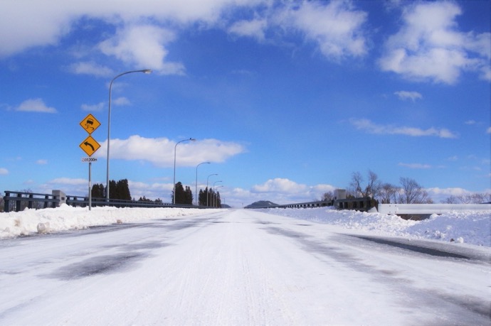 そして特に注意したいのが「橋の上」です。水面を渡る橋は大地に接していないため地熱の影響がなく、さらに川などの上には風を遮る地形や建造物もないことから、上下を風が通り抜けて路面温度が下がりやすくなっています。