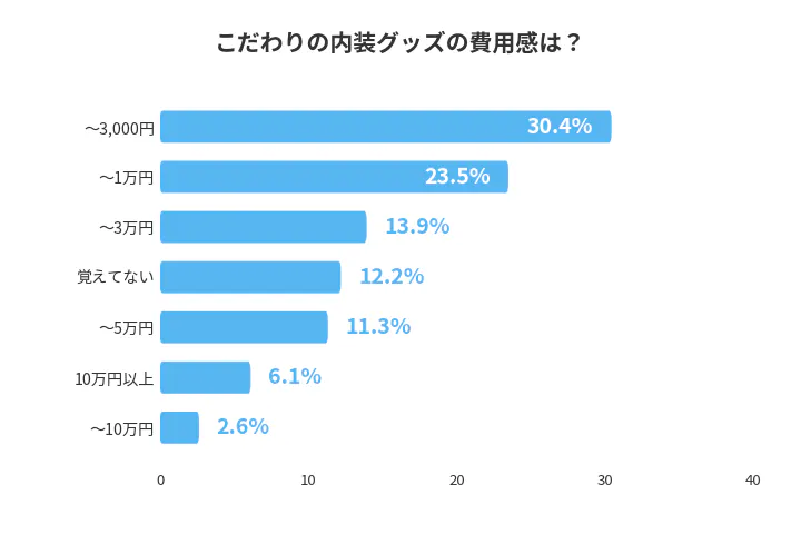 「~3,000円」30.4%、「~1万円」23.5%で、合計53.9%が1万円以内。一方、「10万円以上」も6.1%います。