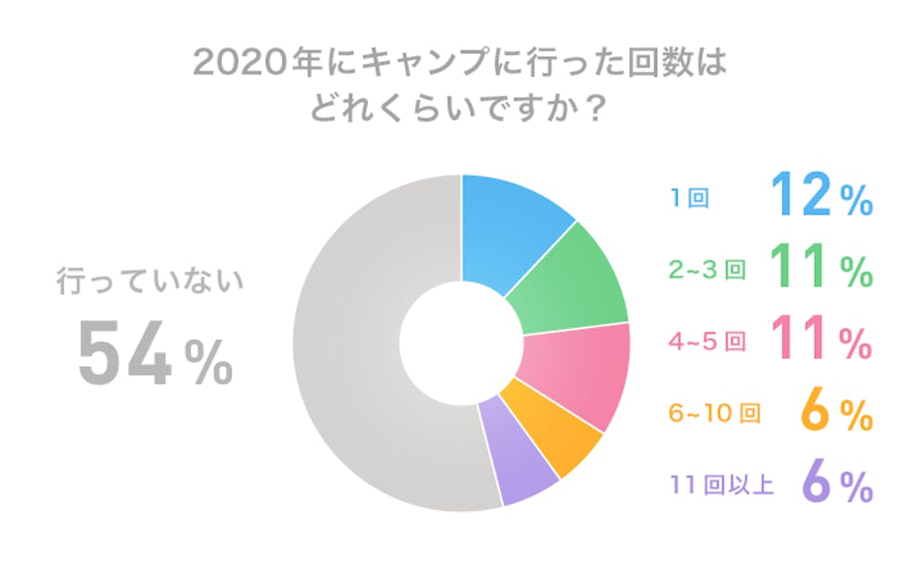 このような時期ですので、なかなか行けないというユーザーが半数を占めていますが、一方で6回以上キャンプに行っているユーザーも1割強ほどいらっしゃいますので、ご家族やソロでキャンプに行かれているのではないでしょうか。